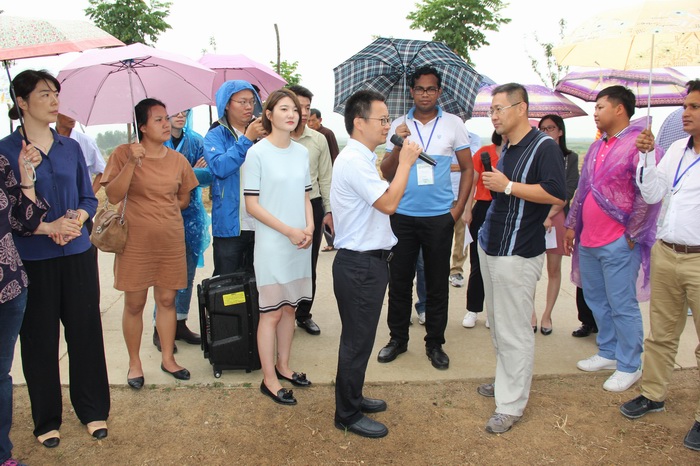 8 月 25 日下午,水利部長江水利委員會城鄉供水規劃與管理培訓班孟加拉、柬埔寨、老撾、緬甸、泰國及越南等 6 國共 30 名相關領域的管理人員及技術官員到襄州區參觀考察節水灌溉工程現場。培訓班成員先后參觀了襄州現代農業綜合示范區農業展示館、雙溝鎮東王崗大型噴灌機組現場、程河鎮臥陽崗牡丹園噴灌現場。培訓班成員在現場對襄州區現場技術負責人提出了各種問題,比如在設計節水灌溉工程前是否考慮了干旱洪澇因素影響,以及對節水灌溉水量的控制等問題,襄州區現場技術負責人通過翻譯都進行了詳細說明。培訓班成員還主動與技術負責人合影留念,并留下了電子郵箱以便相互學習交流。