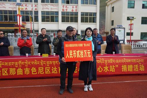 2018年9月15日,中國水利企業協會組織會員單位---湖北水建建設有限公司,援建西藏自治區那曲市色尼區達前鄉完小“愛心水站”,長期以來,達前鄉完小飲用水和生活用水全都是靠車拉和人擔的方式從附近的曉熱河取水飲用,水質渾濁,飲水條件困難。飲水問題亟待解決,水質不達標更是最突出性的問題。通過“愛心水站”項目的建設,有效改善了師生的工作學習生活條件,促進了學校的教育教學質量。